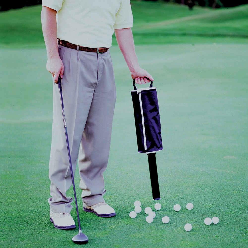 • Golf Ball Loader & Shag Bag - continually feeds golf balls into the Teeing Machine. Eliminates bending over to shag golf balls.