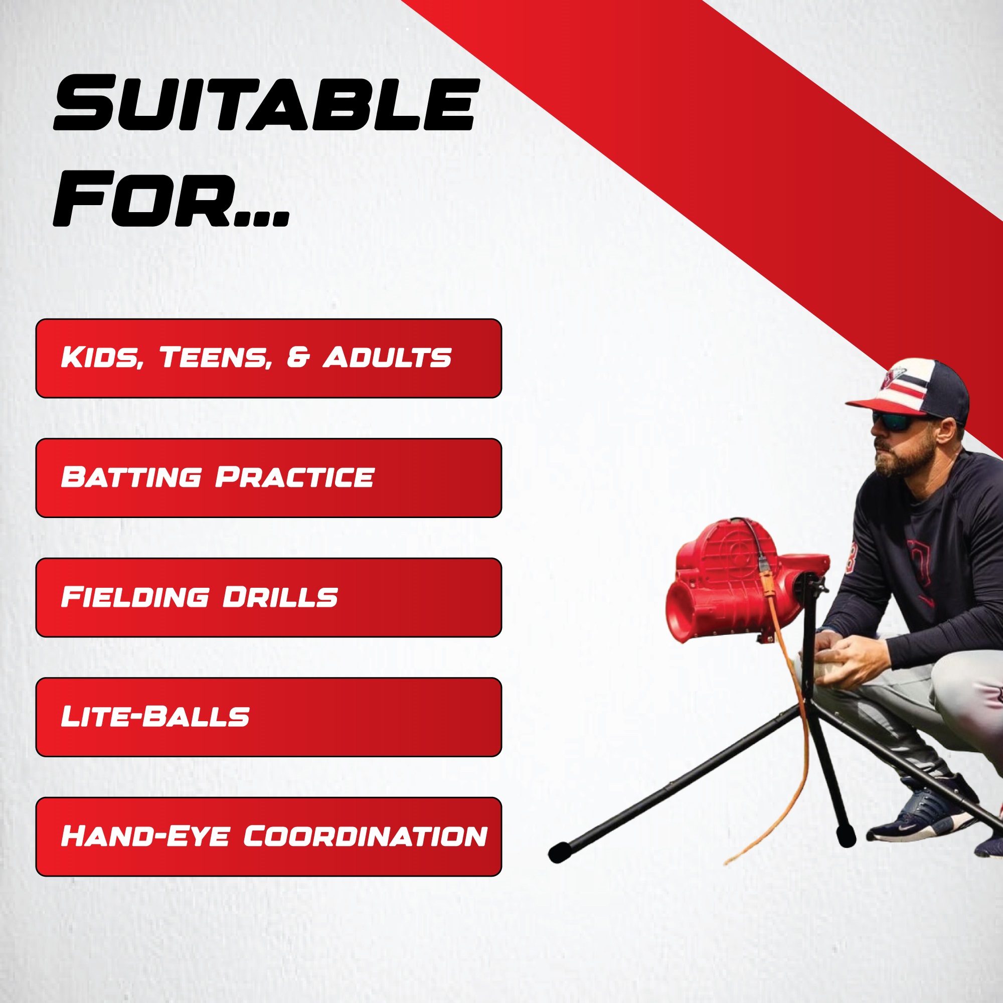 • Pitches Lite Balls Up To 80 MPH at 46 Feet (Depending on Ball)