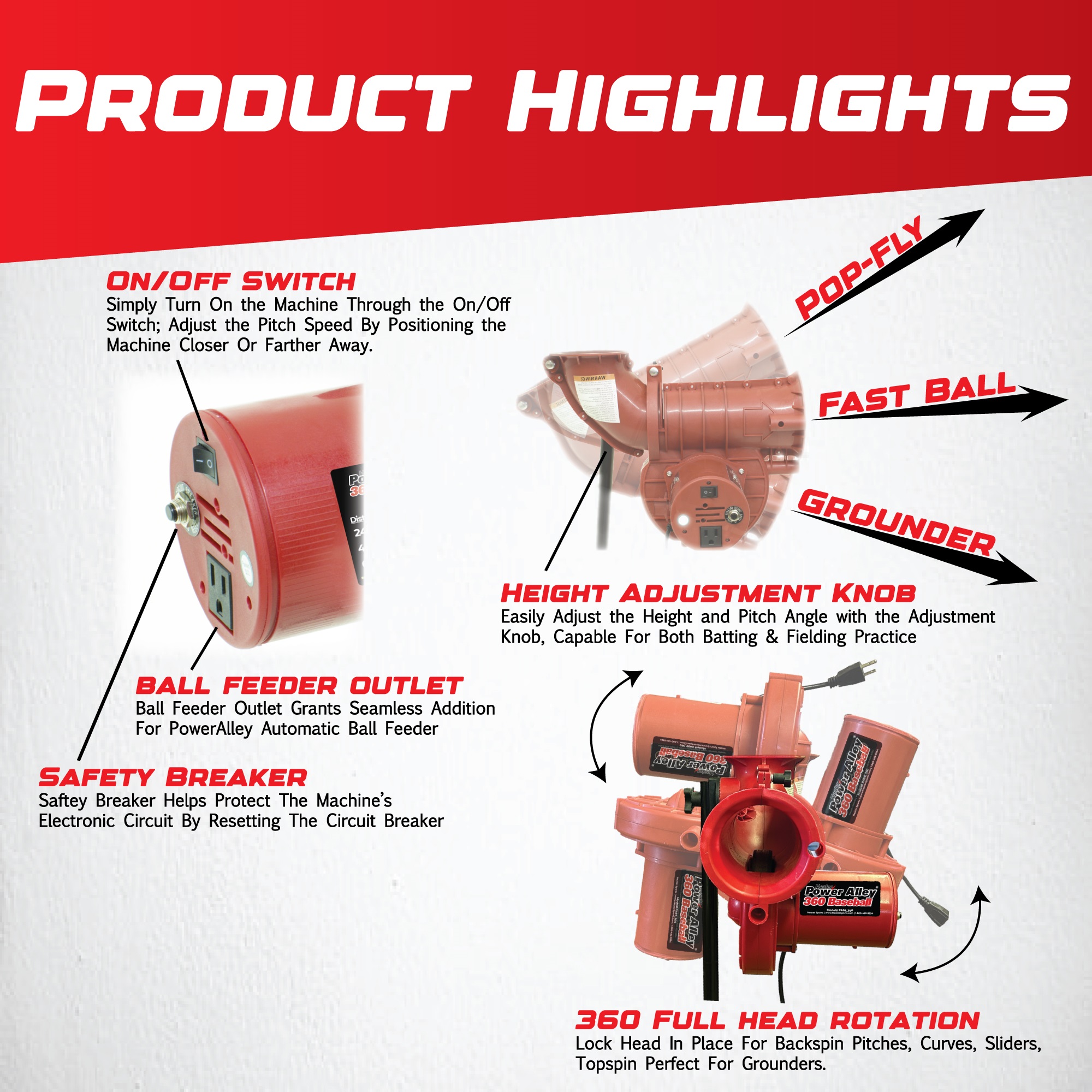 Order your PowerAlley Lite 360 Baseball Pitching Machine today and start elevating your skills at the ball field or in your backyard!