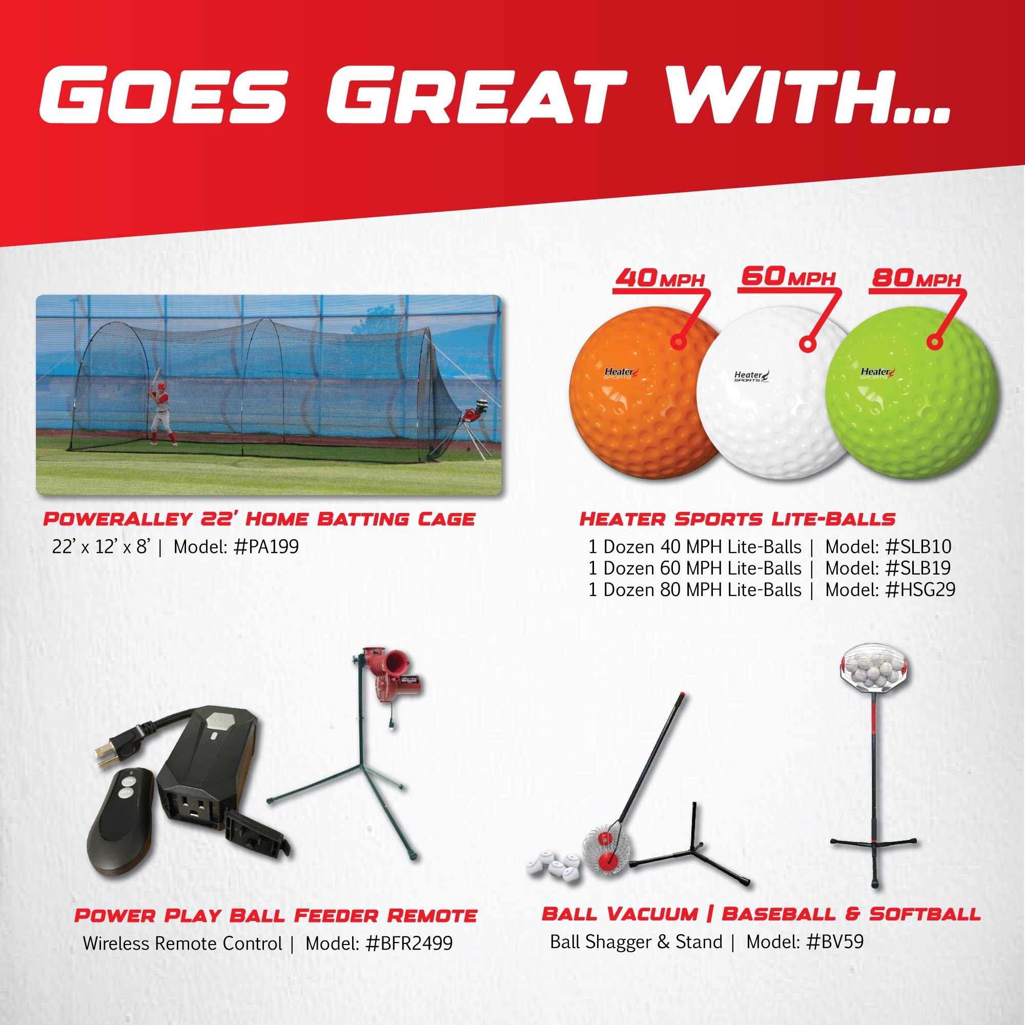 • Variable Pitch Speeds: From 40 MPH (orange lite-balls) to 80 MPH (green lite-balls), adjust pitch speeds by selecting different ball types or moving the machine closer/further from the batter.